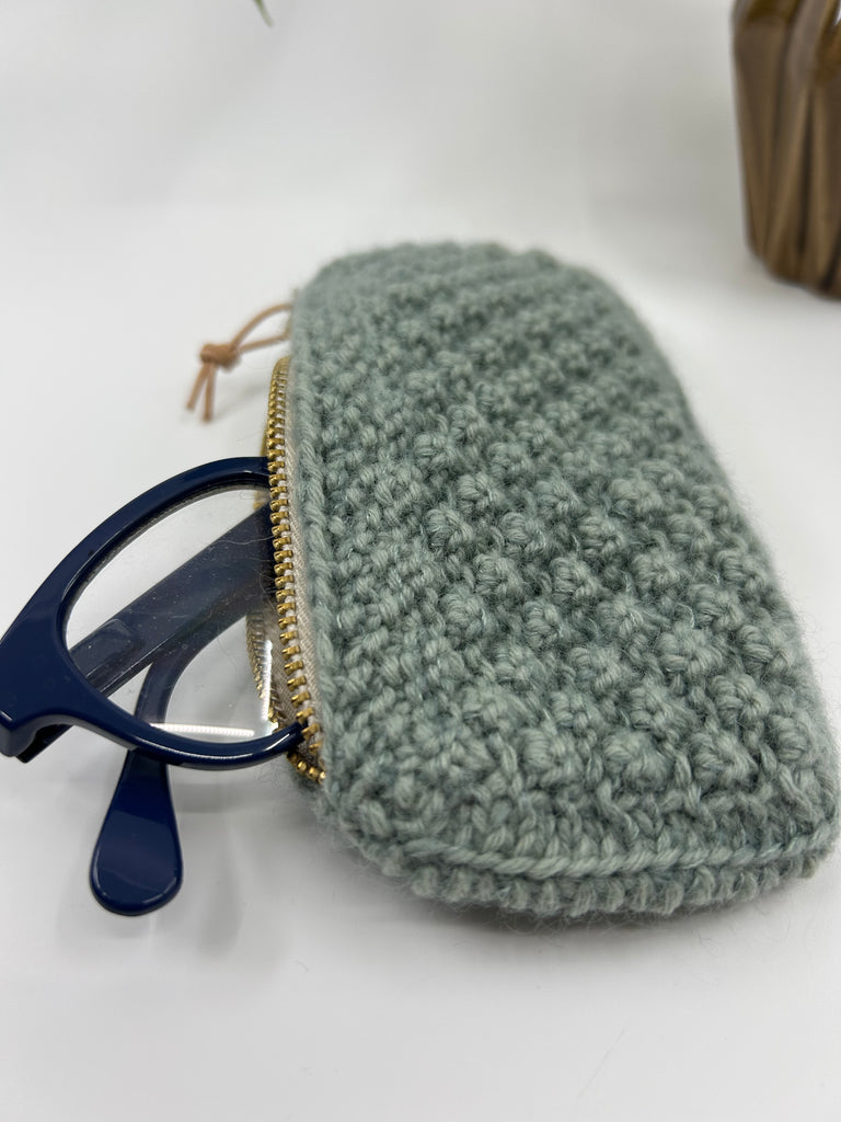 BRAZIL er lavet med Knitting for Olivie's Merino Heavy og Soft Silk Mohair og det giver etuiet et mere fast form, samtidig er inderforet vatteret, således at det beskytter dine briller lidt bedre. Vær opmærksom på at etuiet ikke beskytter mod at dine briller går i stykker!