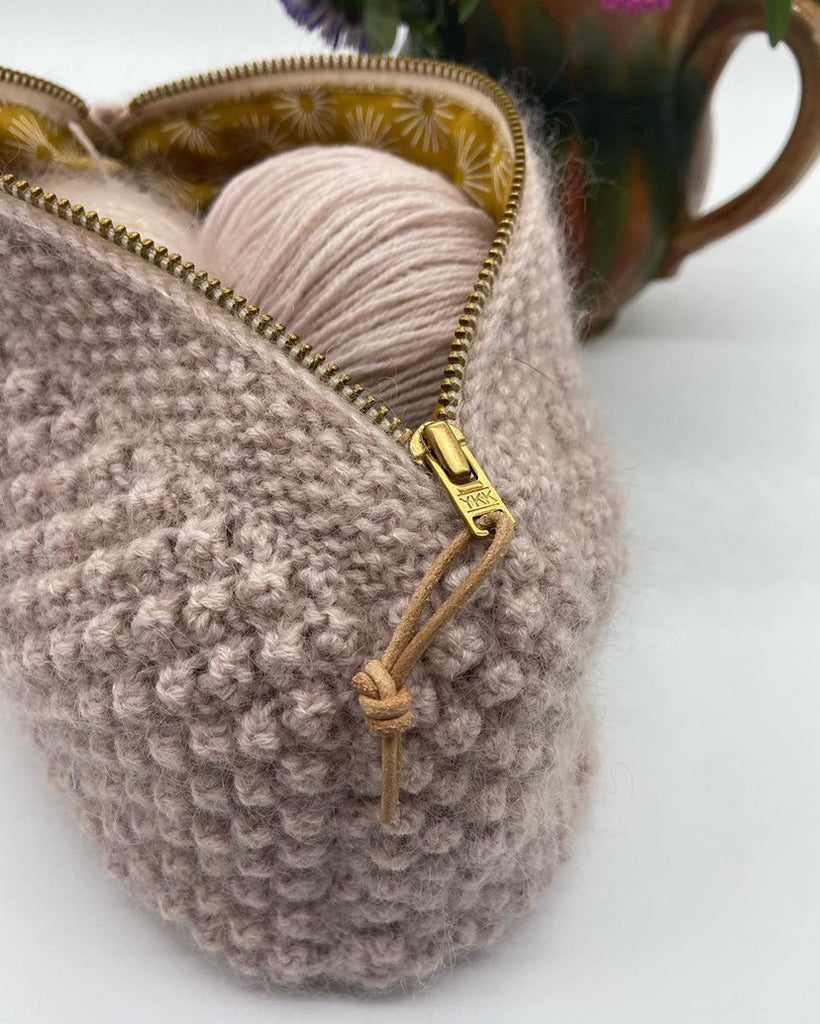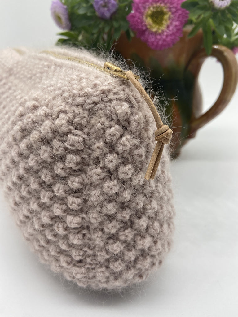 WALNUT er en fin clutch som har en praktisk størrelse, både som gå-i-byen taske eller som ”tasken i tasken”. WALNUT er firkantet i designet og er strikket. Der er mål til inderforet i opskriften.